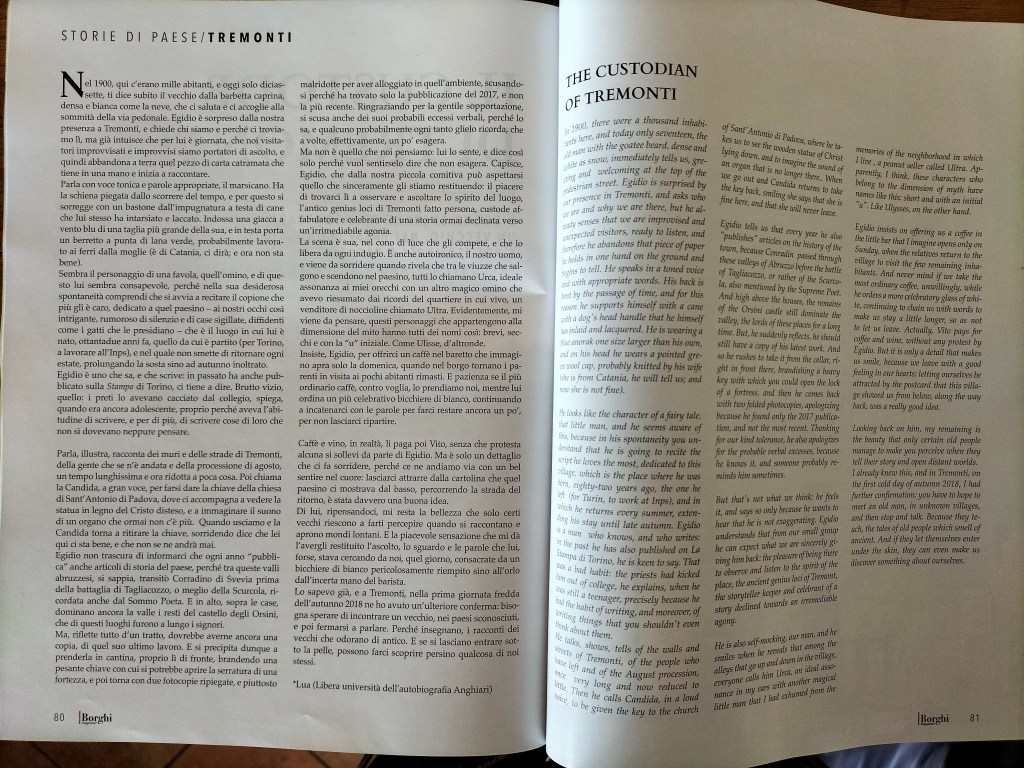 Sul numero di gennaio 2022 di Borghi Magazine, la rivista dei borghi più belli d’Italia, ho pubblicato il racconto di una mia esperienza di qualche anno fa.